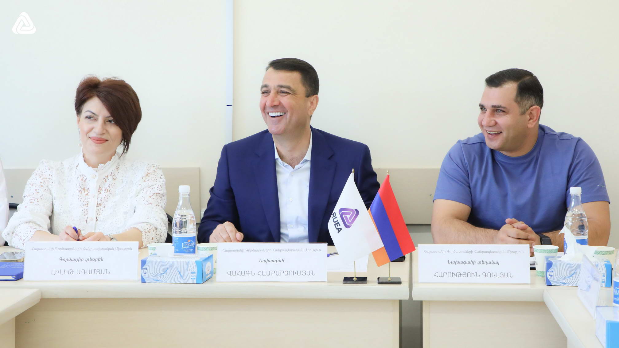 Օրակարգի առաջին հարցի վերաբերյալ Միության նախագահ Վահագն Համբարձումյանը նշեց, որ Միությունը հետևողականորեն շարունակում է համալրվել նոր անդամներով` ընդգրկելով տարբեր ոլորտների առաջատար կազմակերպություններ, որոնք իրենց փորձով ու ոլորտային հաջողություններով կարող են էական ներդրում ունենալ Միության գործունեության զարգացման, ռազմավարական ուղղությունների առաջմղման և գործատուների շահերի համակարգված ներկայացման գործում։